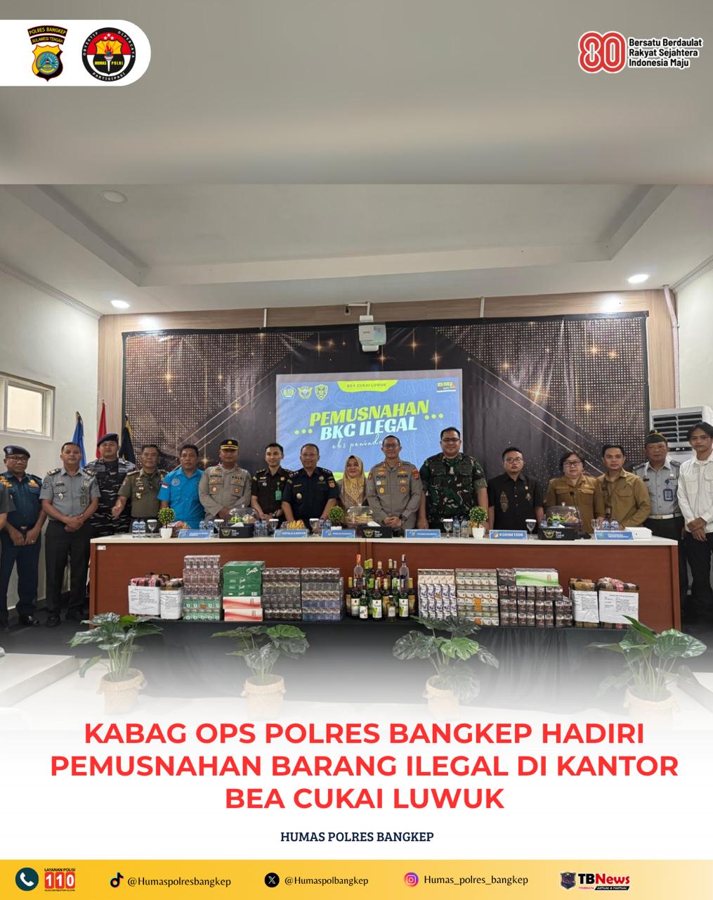 Luwuk, Banggaitoday.com – Kompol Maikun, S.H., M.H., selaku Kabag Ops Polres Banggai Kepulauan, mewakili Kapolres Banggai Kepulauan dalam acara pemusnahan barang-barang ilegal di Kantor Bea Cukai Luwuk. Acara yang dihadiri oleh berbagai unsur Forum Koordinasi Pimpinan Daerah (Forkopimda) ini menjadi bukti nyata sinergi antarinstansi dalam memberantas peredaran barang ilegal.