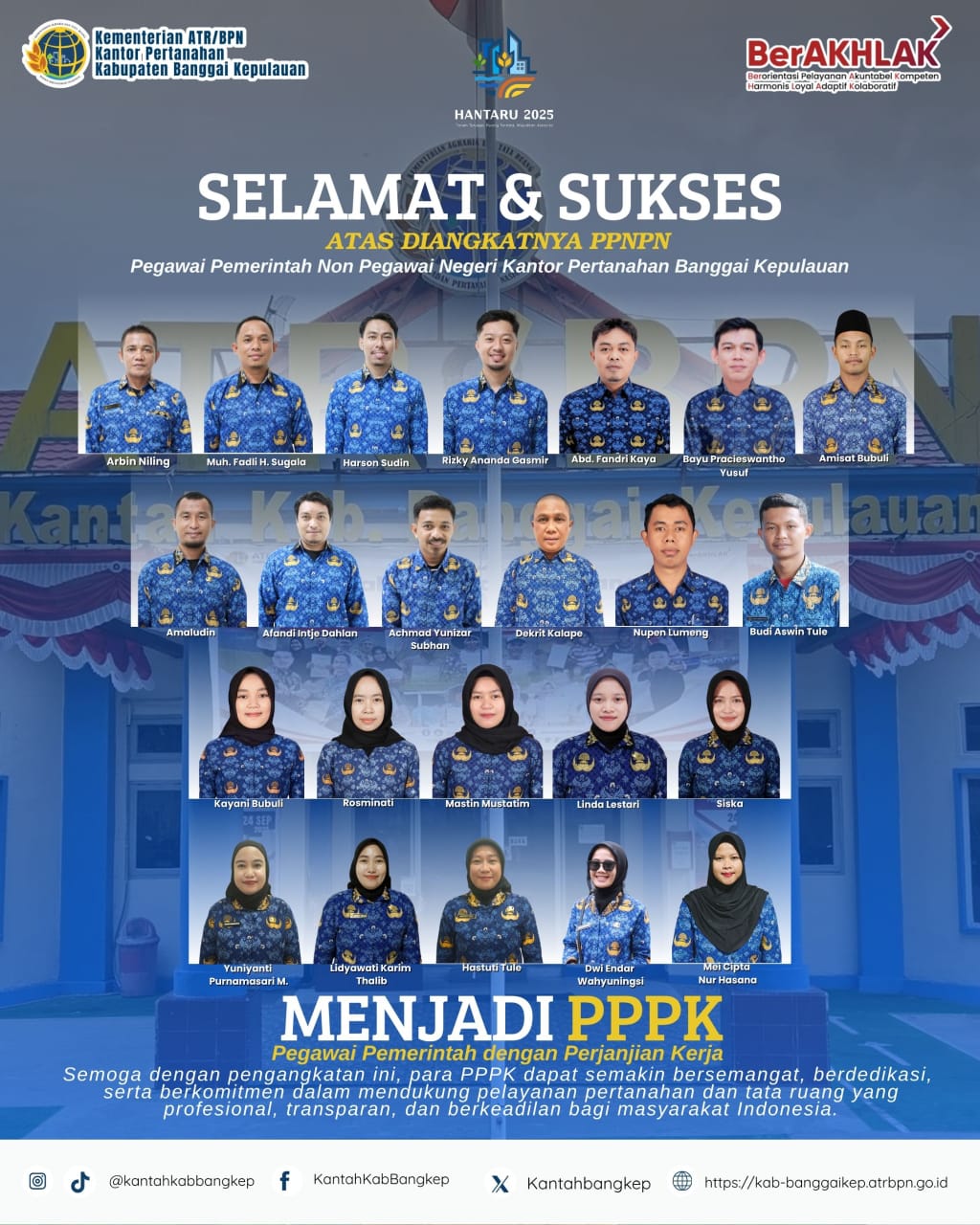Bangkep, Banggaitoday.com – Segenap jajaran Kantor Pertanahan Kab.Banggai Kepulauan mengucapkan selamat dan sukses kepada Pegawai Pemerintah dengan Perjanjian Kerja (PPPK)TA. 2024.