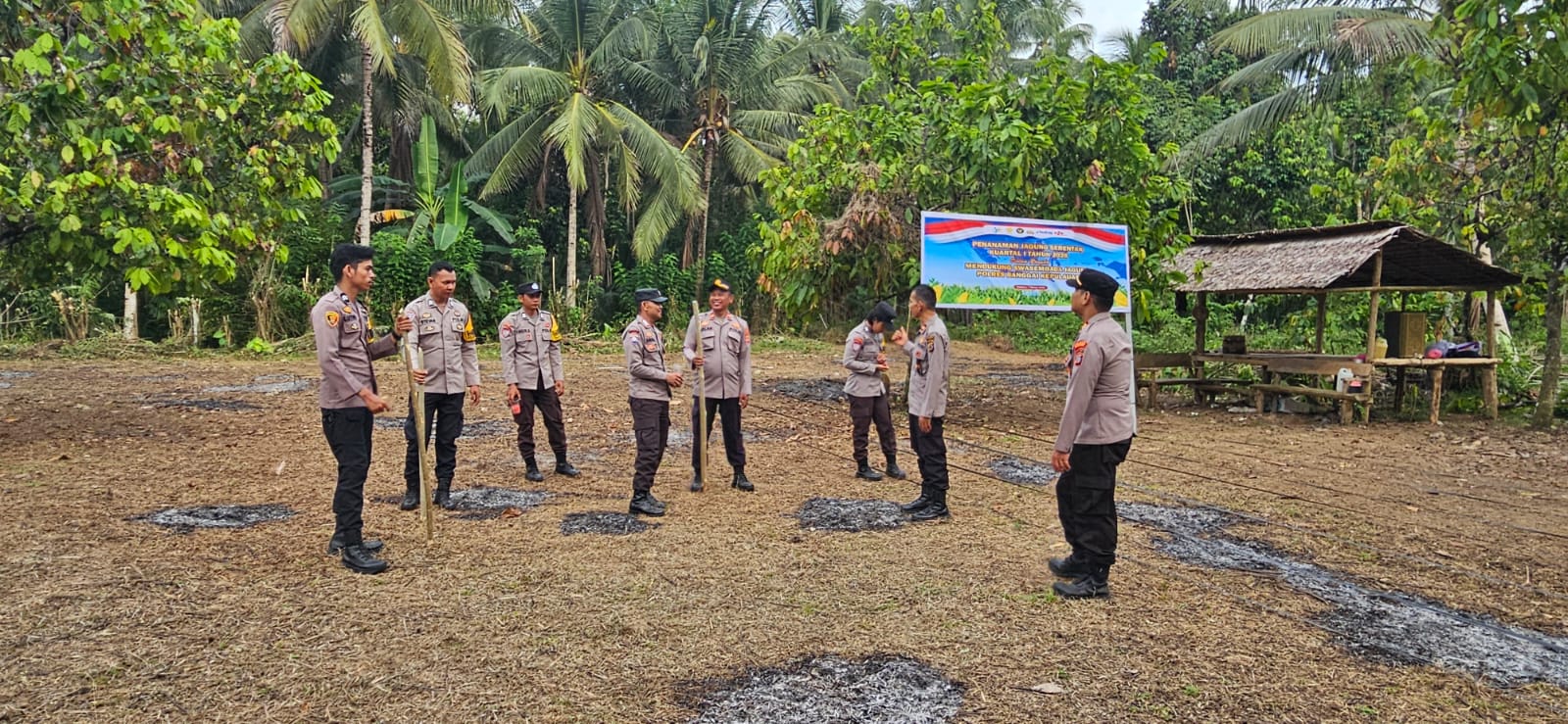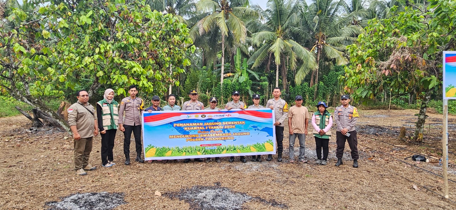 Penanaman jagung ini dilakukan di atas lahan binaan Polri seluas satu hektar dengan menggunakan bibit unggul sebanyak 10 kilogram. Sinergi antara aparat kepolisian, petugas penyuluh pertanian, dan pemerintah desa ini diharapkan dapat menjadi stimulan bagi masyarakat sekitar untuk mengoptimalkan lahan produktif demi kemandirian pangan di wilayah Tinangkung Selatan.
