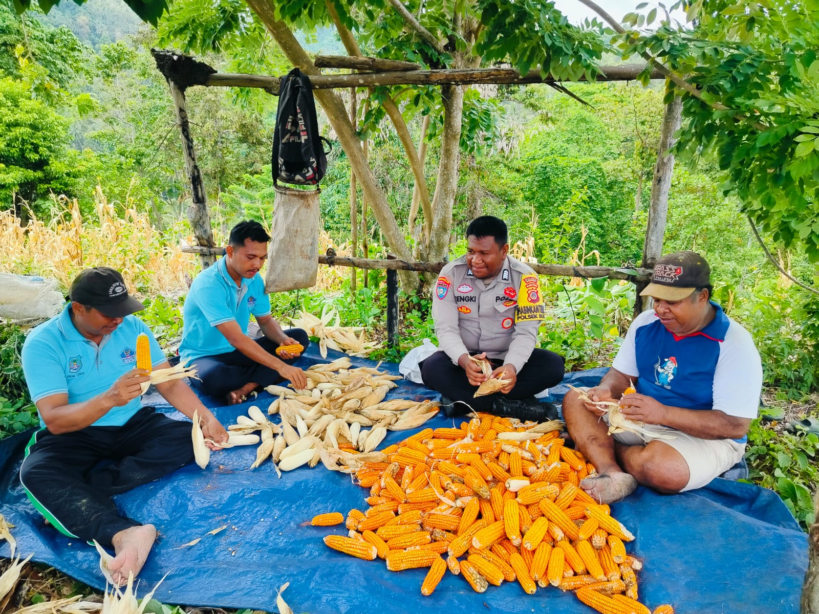 Dukung Program Ketahanan Pangan Nasional, Polsek Buko Kawal Panen Jagung di Desa Olusi