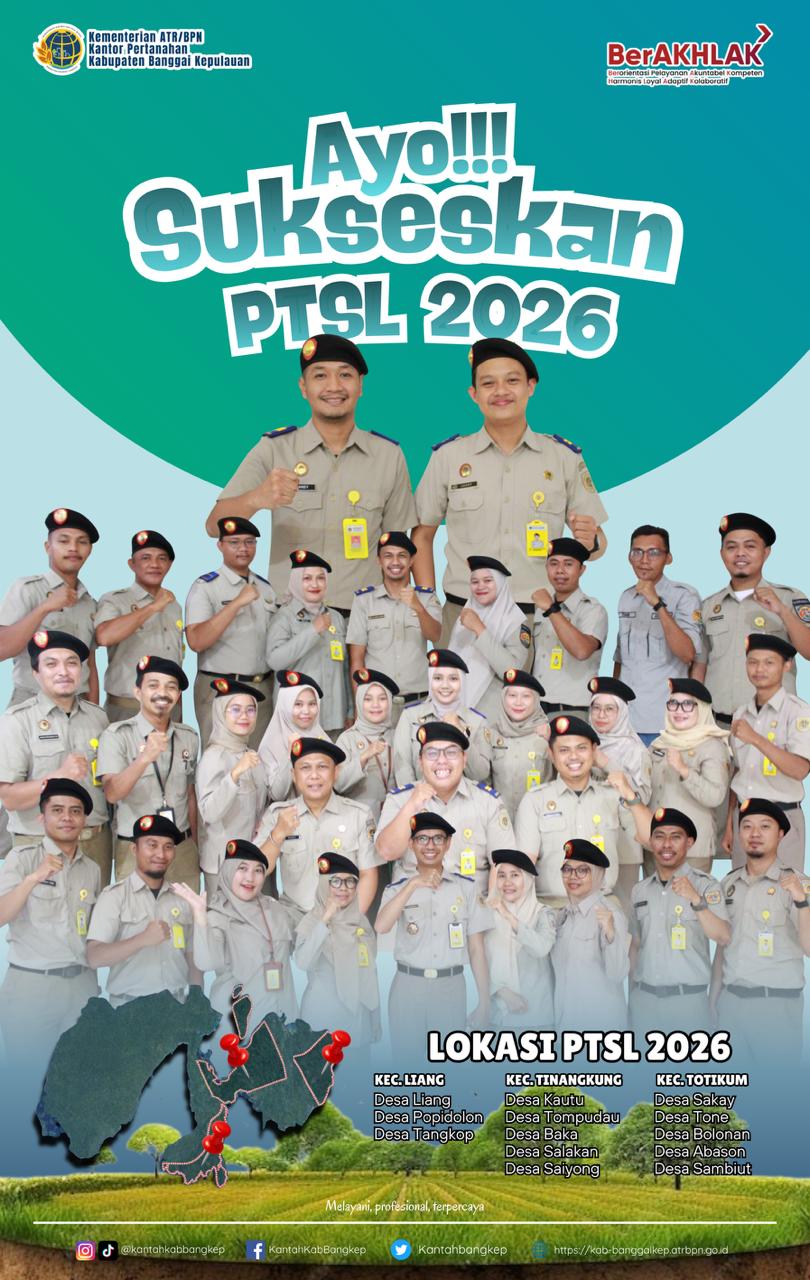 BANGKEP, Banggaitoday.com – Dalam rangka memberikan kepastian hukum atas kepemilikan tanah serta mendukung percepatan pendaftaran tanah di seluruh Indonesia, Kantor Pertanahan Kabupaten Banggai Kepulauan kembali melaksanakan Program Pendaftaran Tanah Sistematis Lengkap (PTSL) Tahun 2026.