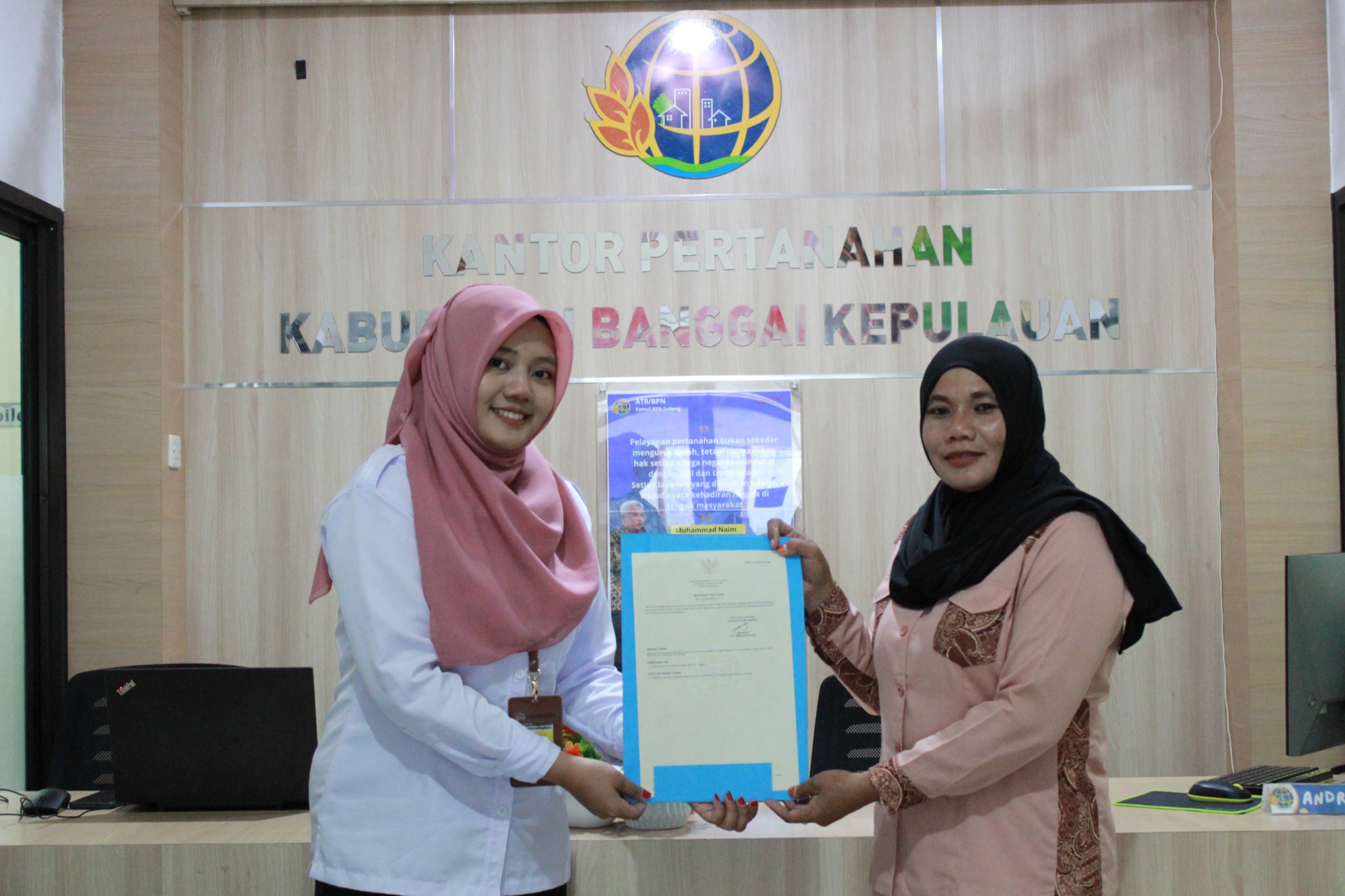 Penyerahan sertipikat tersebut dilakukan oleh Petugas Loket Pelayanan, Andraina Triwahyuni, S.H., mewakili Kantor Pertanahan Kabupaten Banggai Kepulauan. Sertipikat ini menjadi bukti legalitas yang sah atas kepemilikan tanah SLB, sehingga dapat memperkuat pengelolaan aset pendidikan dan mendukung peningkatan layanan pendidikan bagi anak-anak berkebutuhan khusus di wilayah tersebut.