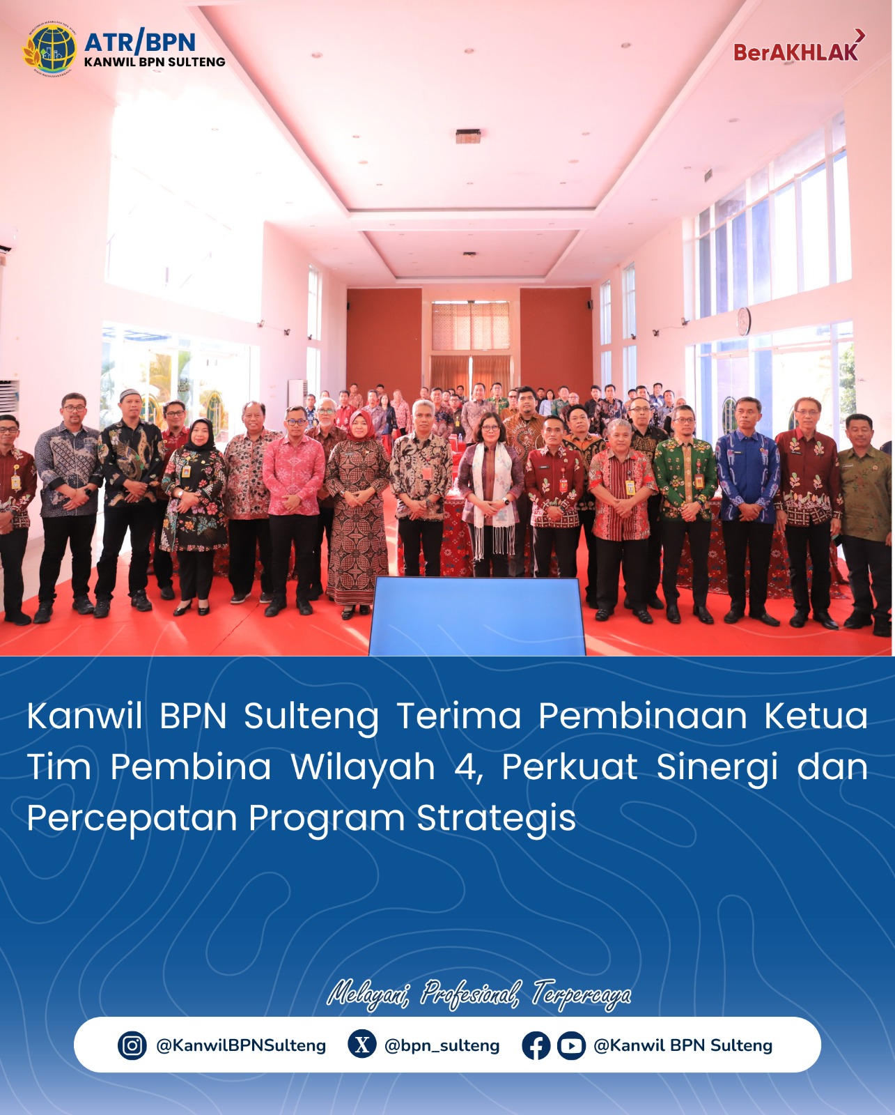 Melalui kegiatan pembinaan ini, diharapkan seluruh jajaran Kanwil dan Kantor Pertanahan di Sulawesi Tengah semakin memperkuat sinergi, meningkatkan kualitas perencanaan dan pelaksanaan program, serta memastikan seluruh target dan indikator kinerja dapat terpenuhi sesuai arahan Kementerian ATR/BPN.