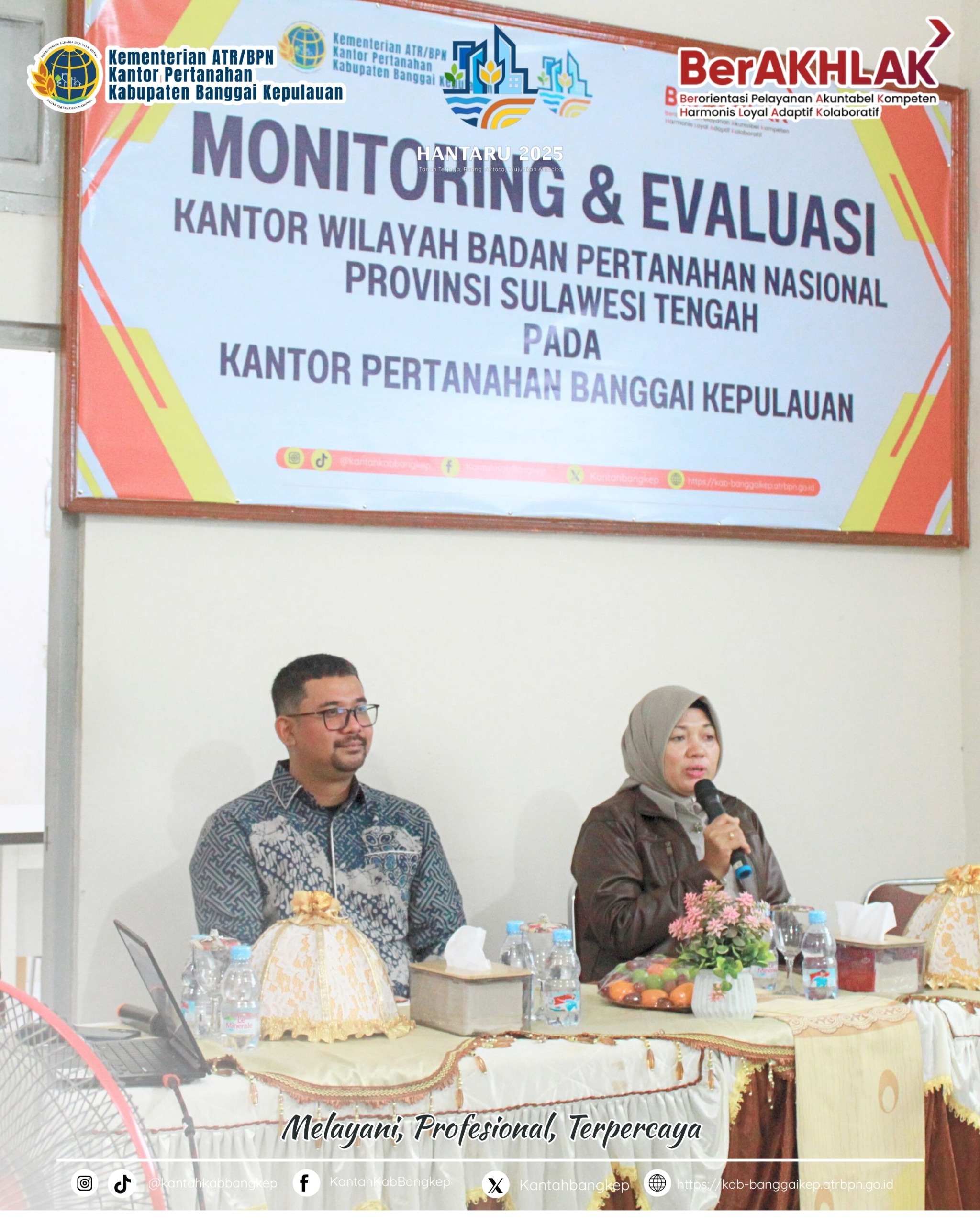 Bangkep, Banggaitoday.com – Kepala Bagian Tata Usaha Kantor Wilayah BPN Provinsi Sulawesi Tengah, Hj. Irna Winarni, melaksanakan kunjungan kerja ke Kantor Pertanahan Kabupaten Banggai Kepulauan pada [Senin, 20 Oktober 2025.