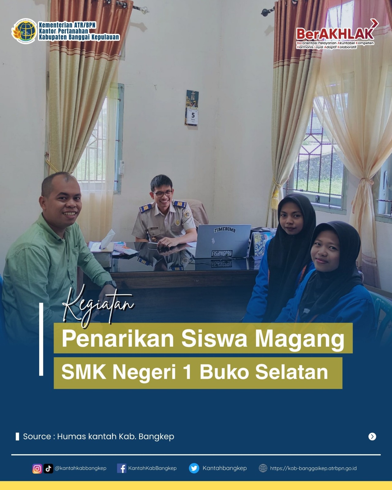 Kantor Pertanahan Kabupaten Banggai Kepulauan juga menyambut baik kerja sama yang terjalin dengan SMK Negeri 1 Buko Selatan sebagai bentuk dukungan terhadap pengembangan sumber daya manusia serta kontribusi nyata dalam dunia pendidikan.