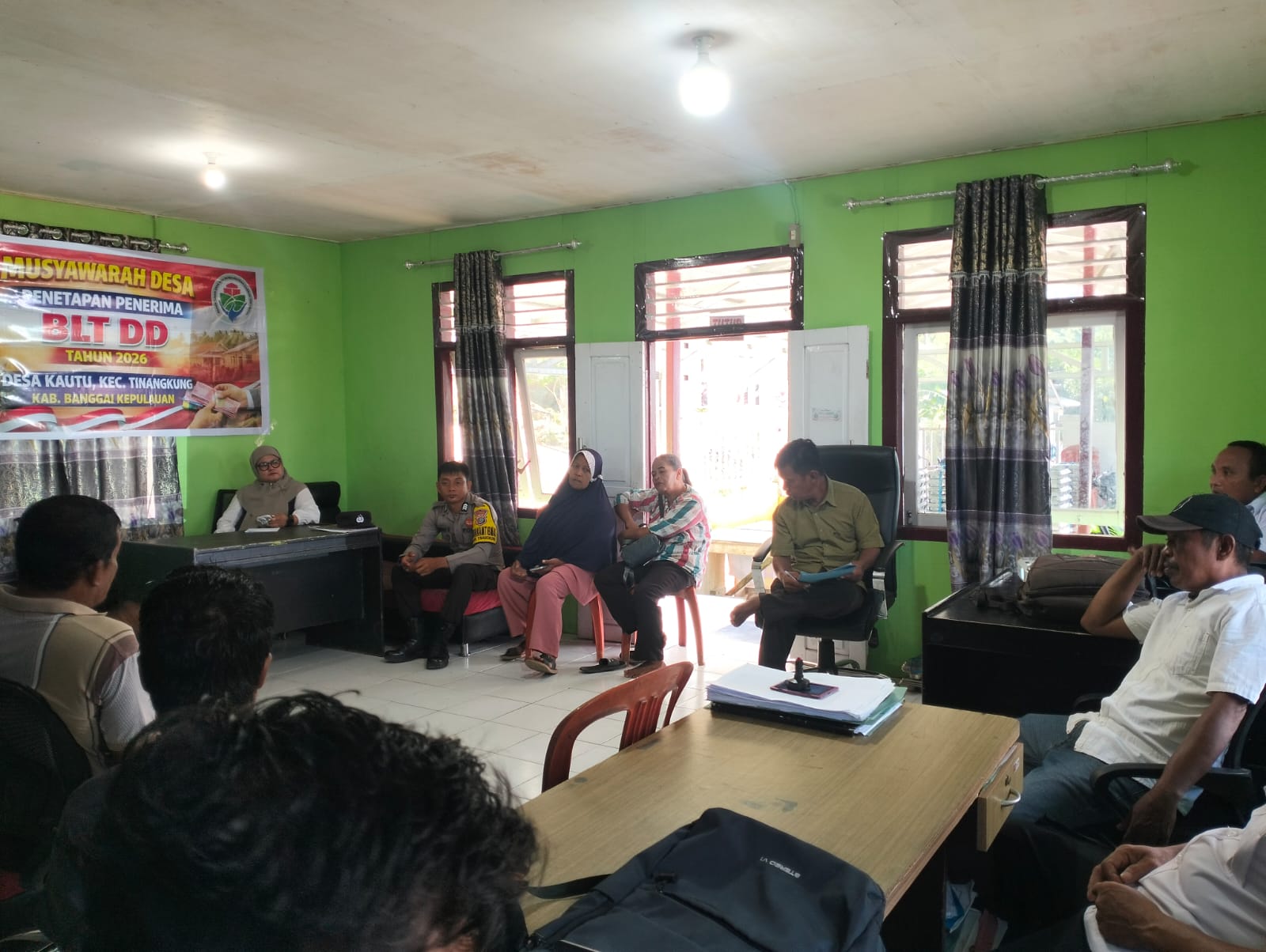 Bangkep, Banggaitoday.com – Dalam rangka memastikan penyaluran bantuan pemerintah tepat sasaran, Bhabinkamtibmas Polsek Tinangkung, Brigpol I Gede Suantarayasa, menghadiri kegiatan Musyawarah Desa (Musdes) penetapan penerima Bantuan Langsung Tunai Dana Desa (BLT DD) tahun anggaran 2026. Kegiatan ini berlangsung khidmat di Kantor Desa Kautu, Kecamatan Tinangkung, Kabupaten Banggai Kepulauan, Rabu (28/1/2026).
