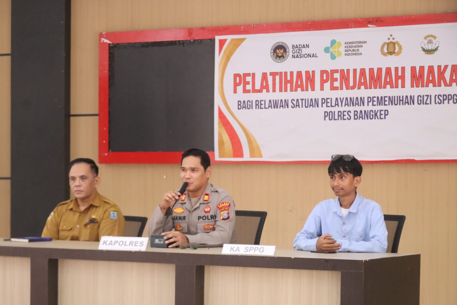 Rangkaian acara diawali dengan prosesi pembukaan yang khidmat, sambutan dari Kapolres Bangkep serta Kepala Dinas Kesehatan, hingga sesi pemberian materi teknis oleh tenaga ahli. Kursus intensif ini mencakup praktik langsung mengenai tata cara pengolahan makanan yang sehat serta edukasi mengenai akuntansi pengelolaan stok pangan SPPG yang akuntabel.